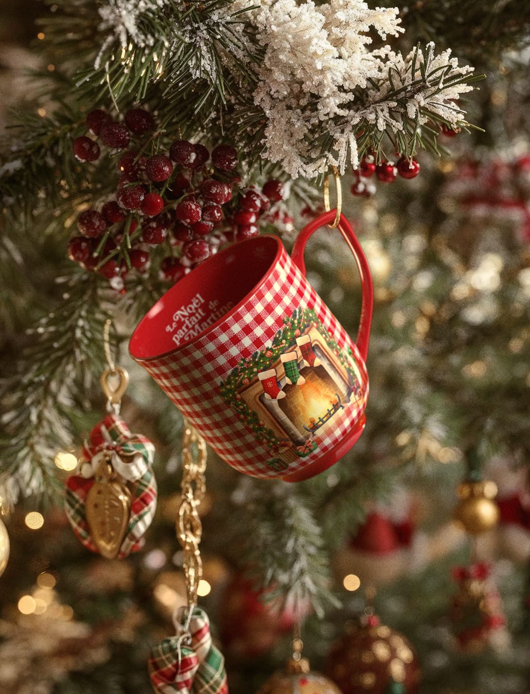 Ce mug capture toute la chaleur d’un intérieur de Noël parfait, orné d’un majestueux sapin décoré, célèbre les traditions, les guirlandes scintillantes et l’excitation des préparatifs.